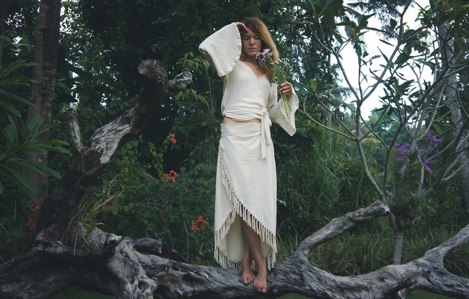 This gypsystyle wrap organic cotton fringe skirt is entirely handmade with embroidery decoration on the belt , raw organic cotton fabric makes you feel so comfortable and feminine. The organic fairy wrap skirt is very soft and pleasant to the skin, a gorgeous piece of your gypsy clothing style.